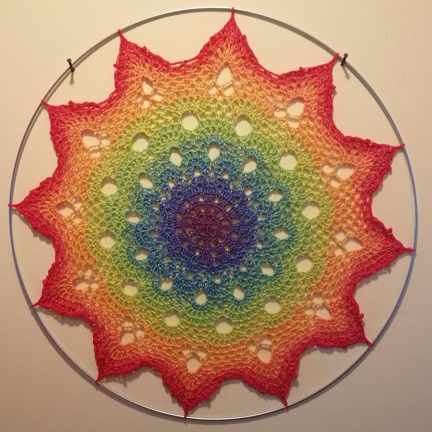 Häkelmandalas in verschiedenen Farben und Größen. Auf Anfrage fertige ich für dich auch ein Mandala ganz nach deinen Wünschen an.